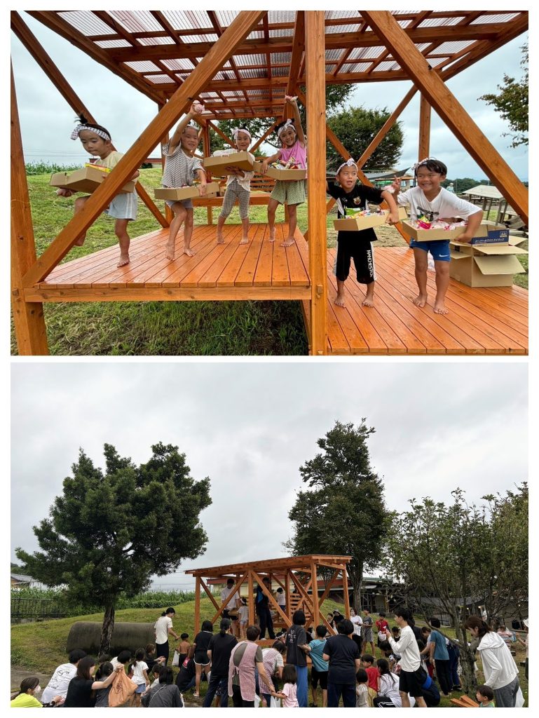 遊具の老朽化が進み、子どもたちの安全を考えてどうしようか悩んでいたところ、建築家である保護者の方から「せっかくなら子どもたちに餅まき(上棟式)を体験させてあげましょう」という素敵なご提案をいただきました。